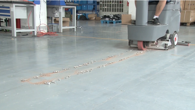 工厂加工车间,散落的金属颗粒、遗落的螺丝等,重量和硬度都很大,一般的清扫方式会很吃力。