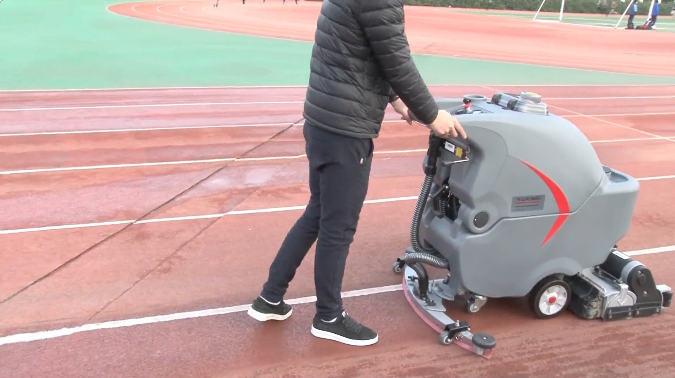 体育场馆、学校运动场的跑道,缺少有效清洁方式,表面粗糙、有弹性易粘连,人工清扫难度大。