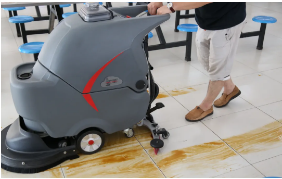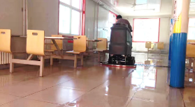 对于地面的消杀工作,可以在饭点之前和之后,将消毒液和清水按照一定的比例融合后,加入洗地机清水箱,对地面进行单清洗作业(抬起吸水扒),约30分钟后,抬起刷盘,放下吸水扒,开启单吸模式,完成对地面的消杀工作。