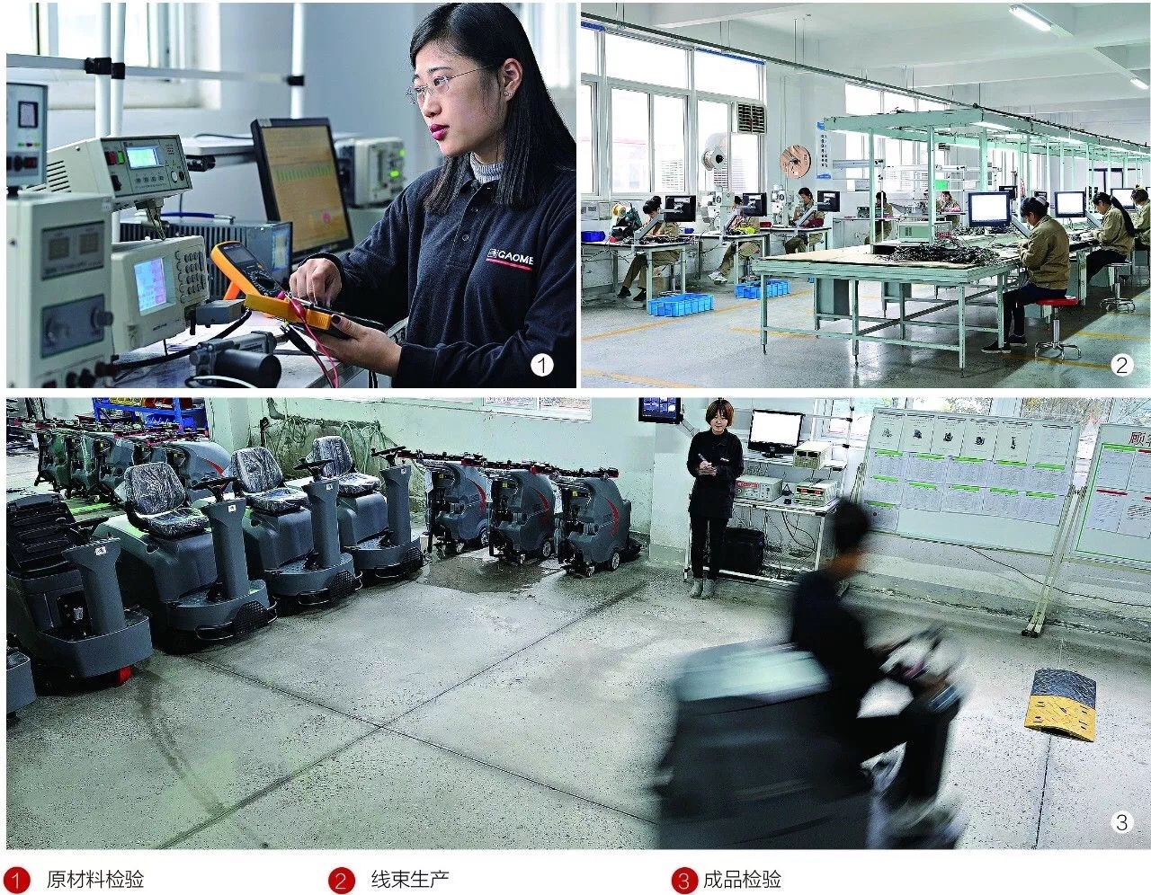 厂房面积15000㎡,员工202人的辉达娱乐规格庞大,支撑起每月600-700台的洗地机仓储周转,且各项指标皆中国领先:从进货检验(IQC)到成品(FQC),实施全程品质管理监测,提前预警;关键零部件和整机激光打码,产品操作流程全程视频录像,结合流水线生产方式和ERP管理系统,从原材料进料到成品出库全程可追溯。实现管理可视化、标准化、流程化。